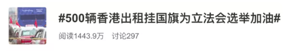 香港街頭,五星紅旗在車前車後飄揚,這一幕沖上微博熱搜。