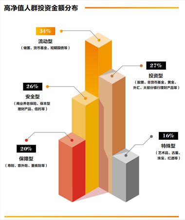 整體看來,中國高淨值人群的資產分佈與投資現狀中,流動型 > 投資型 > 安全型。與全球高淨值人群一樣,對於流動性資產相當重視。
