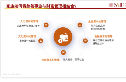 總結一下,家族要將慈善事業與財富管理相結合,具體可從四個方面展開:人力資本的管理(家族傳承和接班人培養)、企業資本的管理(助力企業品牌影響力和經營)、文化資本的管理(形成家族獨特的特徵)、金融資本的管理(結合稅收優惠政策,合理籌畫稅務成本)、社會資本的管理(融入社會、引領社會)。
