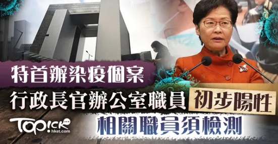 另外,香港行政長官辦公室2月15日表示,該辦公室一名職員今日進行新冠病毒快速測試,結果為初步陽性。該名職員會儘快按衞生署指引交回深喉唾液樣本作化驗。該名職員最後一次上班日期為2月14日,他的日常工作毋須接觸公眾,他亦沒有接觸行政長官林鄭月娥。他工作時有佩戴口罩及遵守有關防疫措施,最近沒有外遊紀錄。