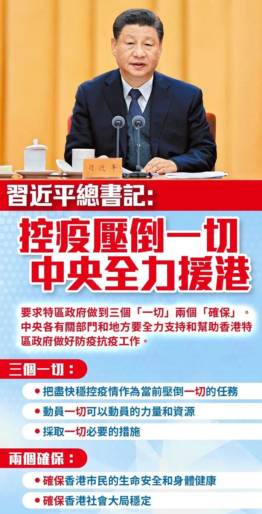 近日習近平總書記就支援香港抗擊第五波新冠肺炎疫情工作作出重要指示,並委託韓正副總理向林鄭月娥行政長官轉達對香港疫情的高度關注和對香港市民的親切關懷,強調香港特區政府要切實負起主體責任,把儘快穩控疫情作為當前壓倒一切的任務,動員一切可以動員的力量和資源,採取一切必要的措施,確保香港市民的生命安全和身體健康,確保香港社會大局穩定。