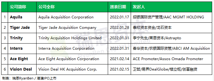 2022年以來,已有6家SPAC(特殊目的收購公司)在港交所遞交上市申請: