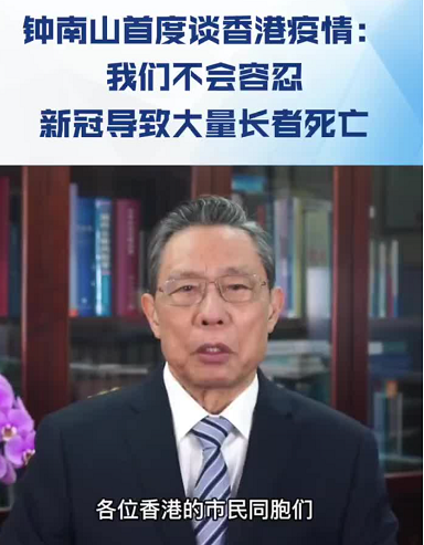 2月21日,共和國勳章獲得者、中國工程院院士、著名呼吸病學專家鐘南山向香港市民加油打氣。針對香港疫情,鐘南山強調,“我們不會容忍自然感染導致大量的長者死亡,所以我們的政策仍然是爭取動態清零。”鐘南山詳細介紹了奧密克戎的特點,並給出三個防疫建議,強調大家要加強團結協作,加上在中央政府的支援下共克時艱,必定能取得香港第五輪抗疫的勝利。